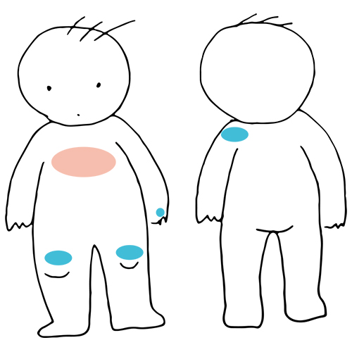 青いところが青あざのできたところ。