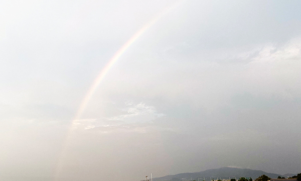朝の虹は雨降りになると言われていますが、雨は降りませんでした。