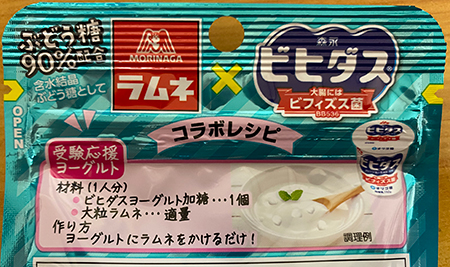 時々買う森永ラムネ(大粒)のパッケージ裏にヨーグルトにかけてみろと書いてあったので、試してみたら。