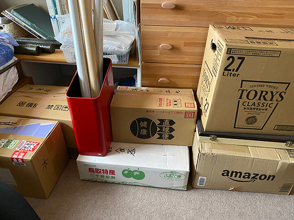 段ボールだとさらに数が増えていたところです。
