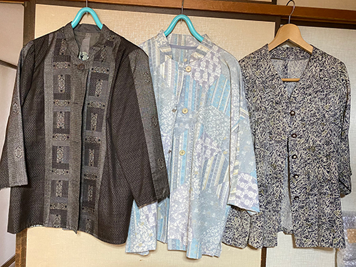 真ん中のんがたぶん一番凝っていて、これを着ていると必ず、おばさま方からお声がけいただく品です。