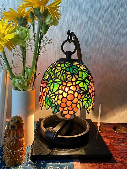 灯りが入ったら、また違うだろうなぁと、ちょっとブドウのランプの台で試してみました。