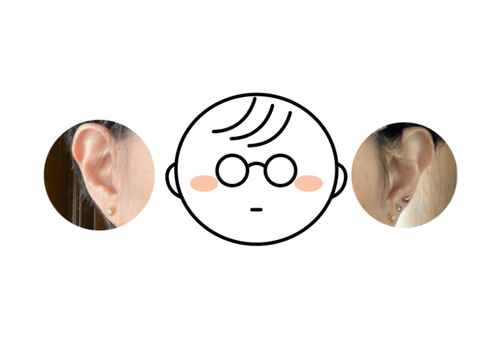 よって、左3つ、右1つ、ピアスをつけられるようになったのでした。