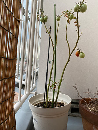 階下のお宅が、お留守にするので譲り受けたミニトマトの鉢植え。