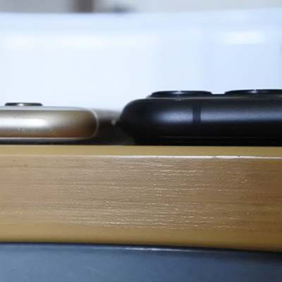6 Plusはそんなに出ていなかったような……でも ケースをつけていたからそんなに気にならなかったのかしら…と 6 Plusのケースを外して比べて写真撮ってみました。