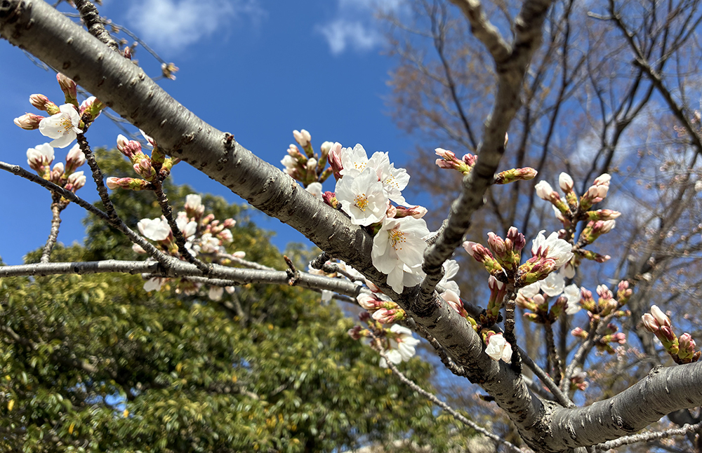 数年前に古い桜の木が切られ、新しく植えられた桜もだいぶ成長してきました。