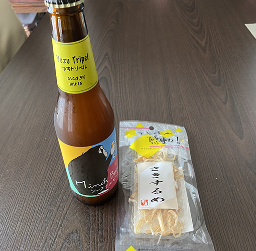 箕面ビールです。おつまみ付きです(笑)