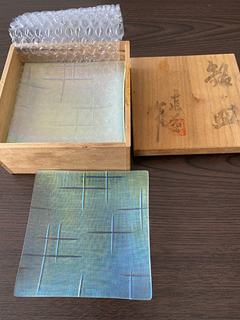 で、写真を撮ってから、箱書きを見て気づいたのですが、左のお皿は「木」と書かれているんですね。