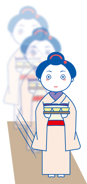 腰を落として、からくり人形(お茶運び人形)のように、頭が上下することなくすーーーーっと運んでいくところ。
