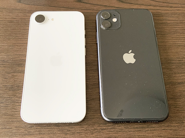 新旧比べてみます。左・iPhone16e/右・iPhone11