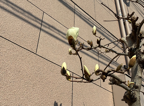 ハクモクレンが咲き始めています。