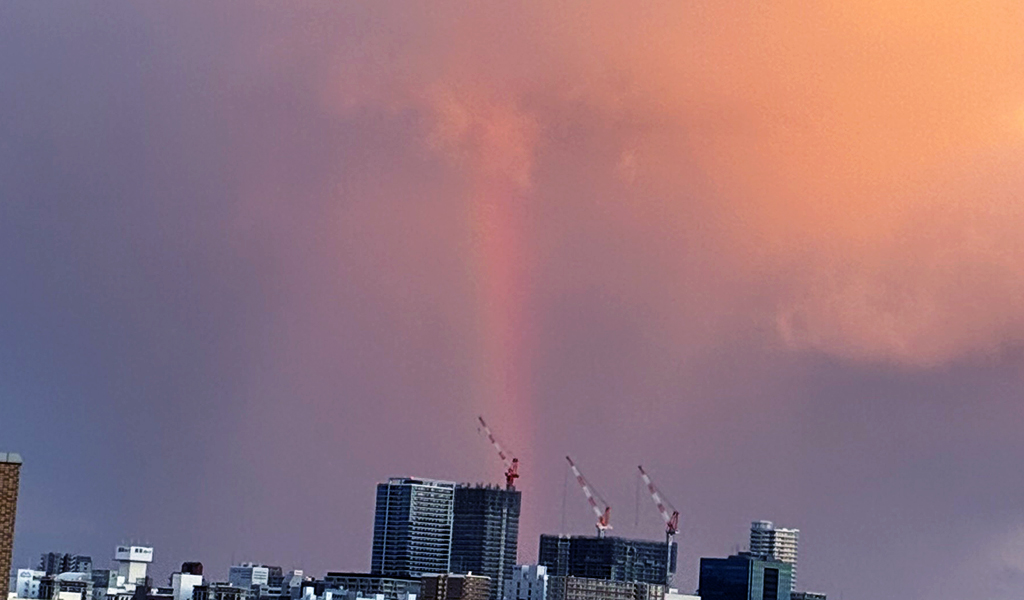 反対の空には めずらしく夕方に虹↓