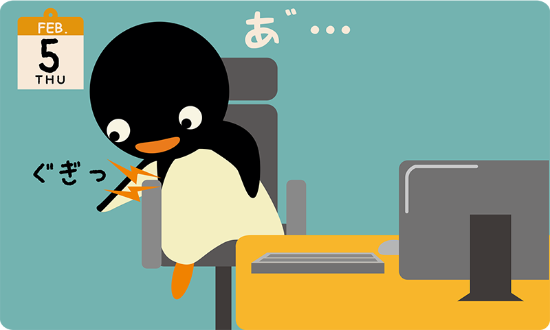 床に落ちた紙くずを拾おうと、椅子に座ったまま手を伸ばしたら……肘掛けに右肋骨が当たってグギっと。。。
