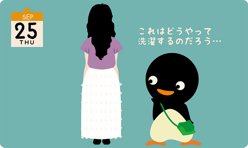 駅で見かけた人。スカートの全面に小さな短冊形のひらひらがついていて…